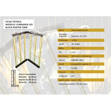 El LED Black Panter de 720W representa un nuevo avance en la innovación de la iluminación LED. Con una eficiencia de 3.1 µmol/J es capaz de ser muy potente pero a la vez consumir muy poca electricidad.