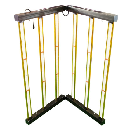 El panel LED tiene unas dimensiones 109,5 x 111 x 5 cm y un diseño compacto y ligero de 6 barras, plegable y con el driver integrado. Esto permite que transportarlo, instalarlo y guardar-lo sea lo más sencillo y cómodo posible. También puede conectarse a un controlador