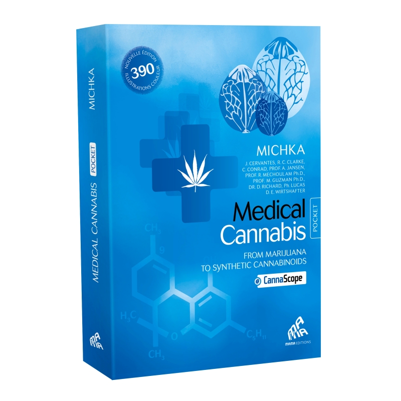Libro de bolsillo de 280 paginas sobre cannabis medicinal, escrito en lengua inglesa.